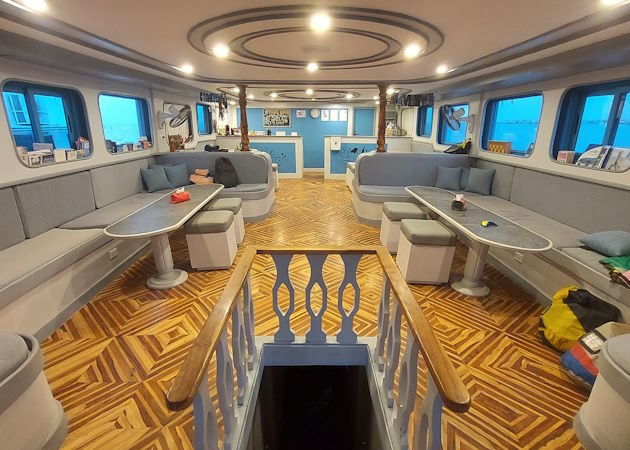 Sobald die magischen Worte des Küchenchefs mit «Food is Ready!» erklingen, wird der Salon Treffpunkt der hungrigen Wassersportler*innen. Am Buffet finden unsere Gäste ein Angebot verschiedener Speisen. Gerne nehmen wir auch auf vegetarische, vegane, lactose- oder glutenfreie Ernährungsweisen oder Allergien Rücksicht.